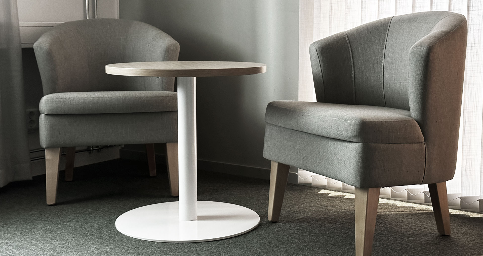 Helan och Halvan har hög sittkomfort och gör sig bra i exempelvis entréer, uppehållsrum eller personalrum.