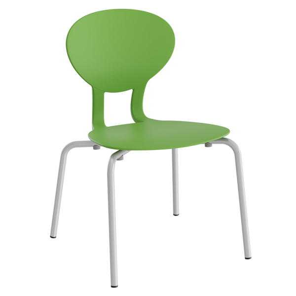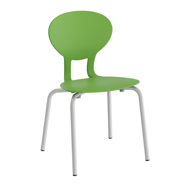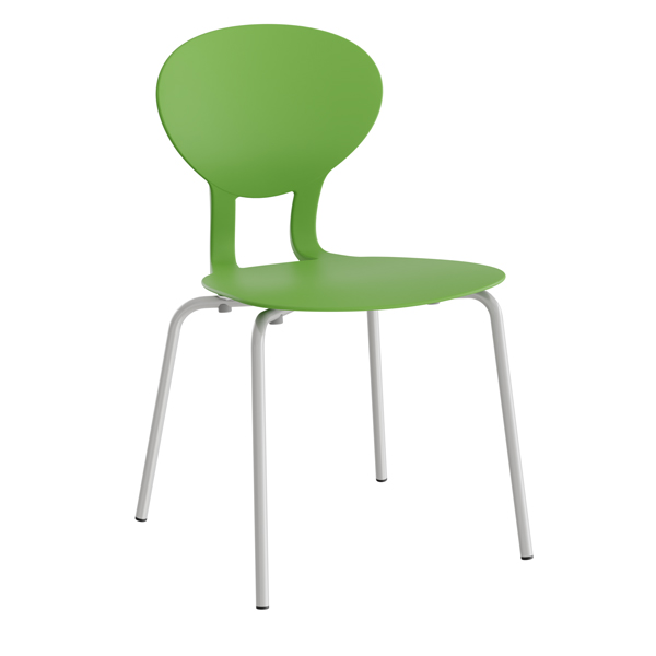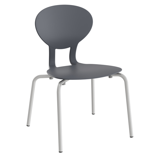 Stol ROCKA med standard sittskal i svart och grå plast (polyurethan). Lackerat stålstativ. Stapelbar.