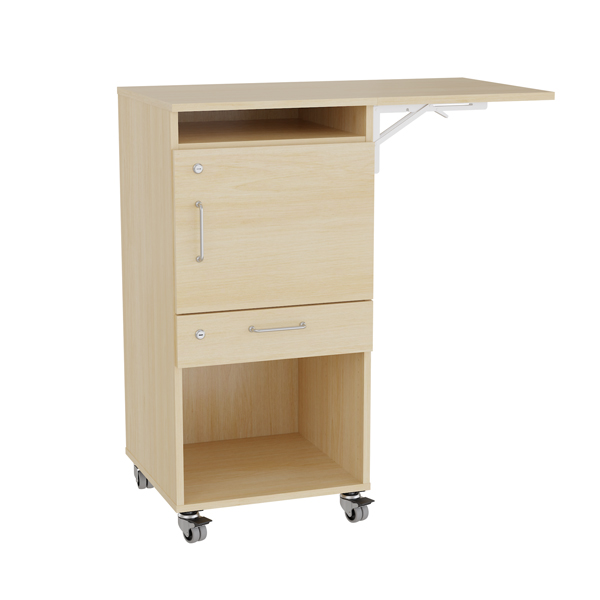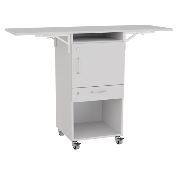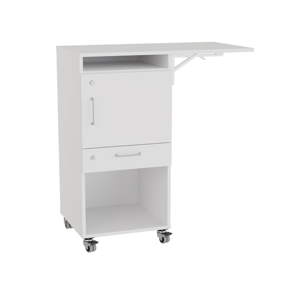 Ståpulpet Stig i vit, grå eller björkmönstad laminat. 4 låsbara hjul. 3 olika modeller A, B och C. Kan utrustas med klaffskiva som tillval.